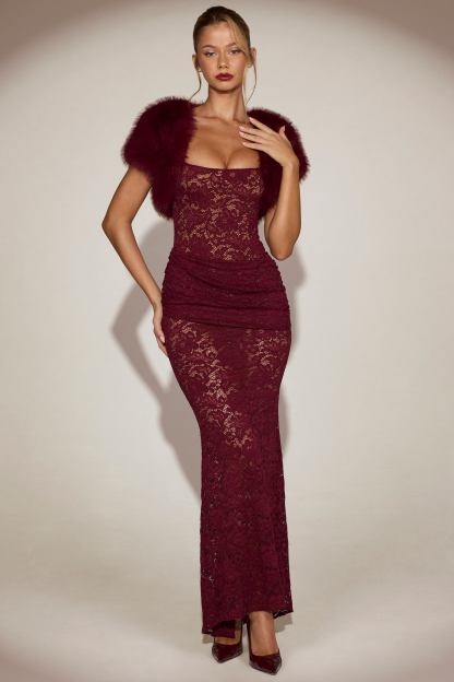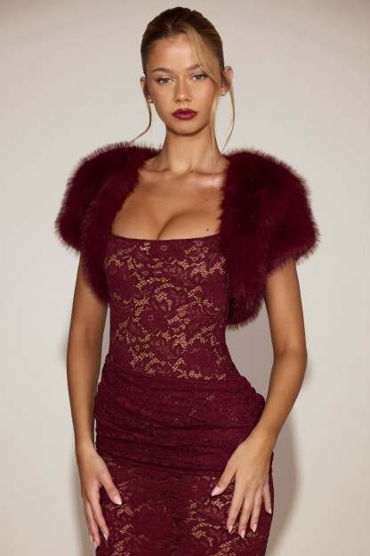 Faux-Fur Short Sleeve Bolero in Wine Red