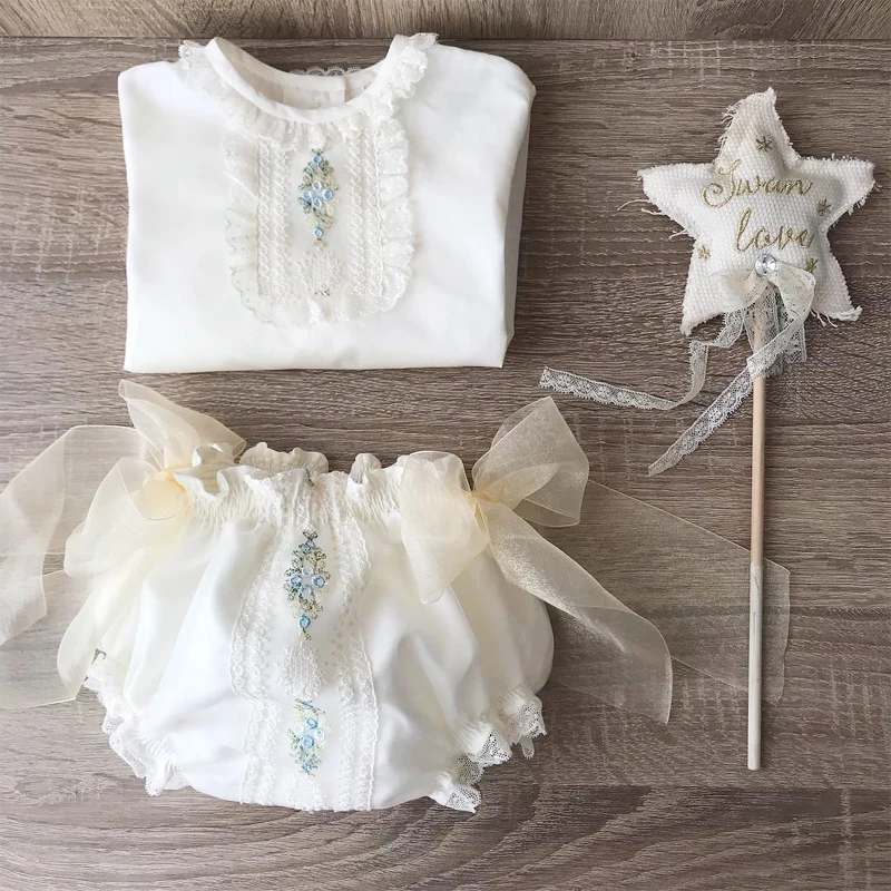 This charming white llittle jumpsuit with a pretty floral pattern and chiffon overlay create an adorably sweet look for your little ones. It is perfect for birthdays, baptismal, weddings, special occasions, or even everyday styling. It features a wand that your kids can pretend like a little fairy. It's also suitable in a theme party costume. It is made of lightweight materials. Let your kids look like a young fairy or angel that is sent from up above to spread cuteness.