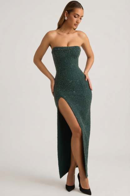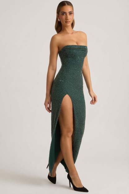 Dancefloor-ready style starts with the Zara mini dress. Cut to a body-hugging silhouette, it features a bandeau cowl neckline and a draped overlay over the hips for flattering movement. Crafted from premium mesh and adorned with all-over HOTFIX embellishments, it is made to turn heads from every angle. Pair with some heels or a faux-fur bolero for a show-stopping night-out look.