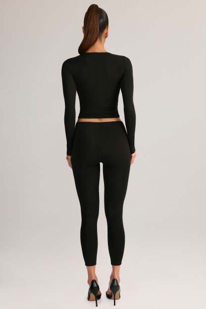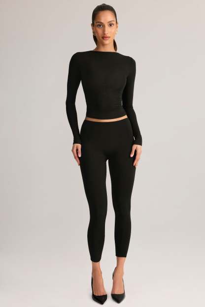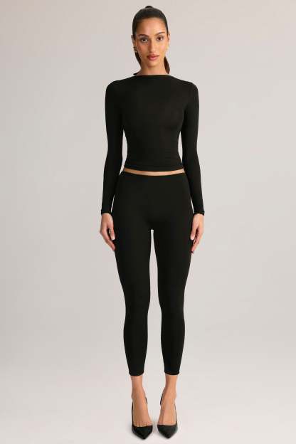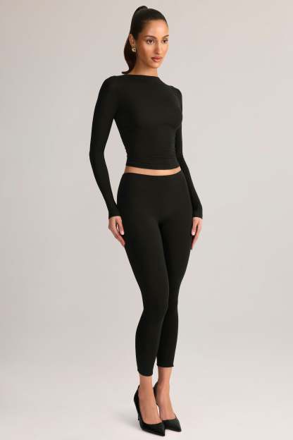 Modal Mid-Rise Leggings in Black