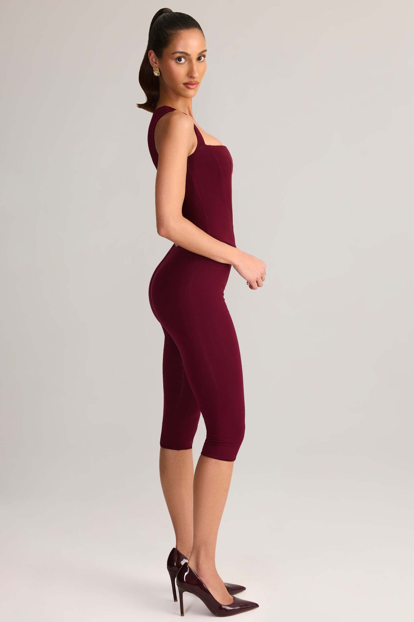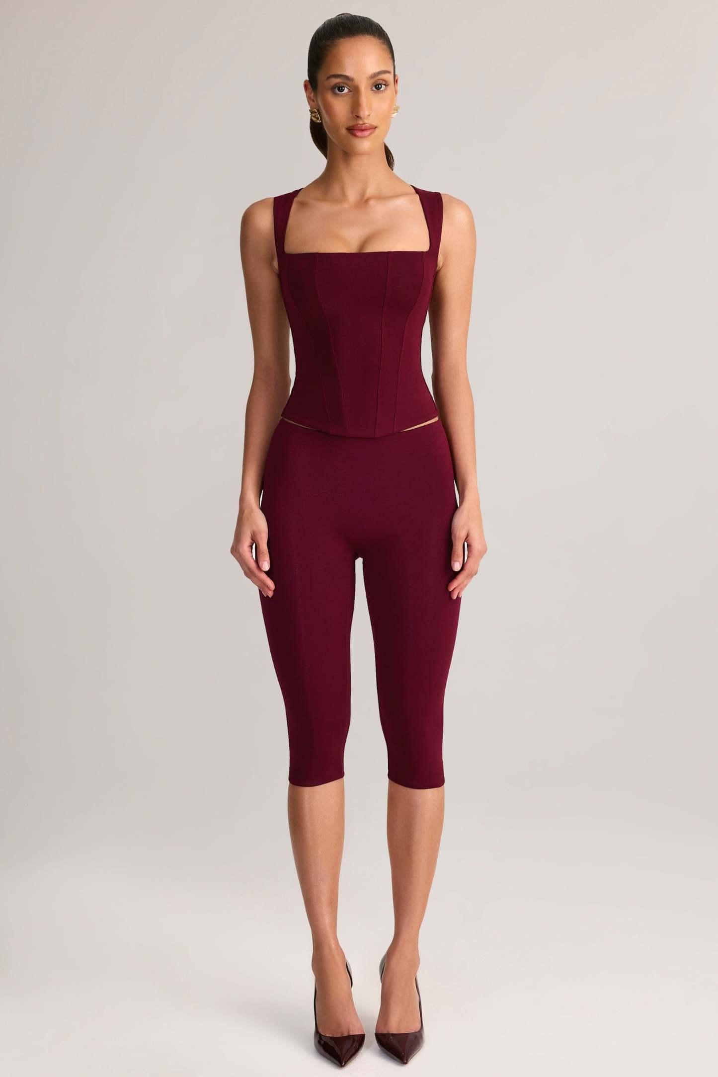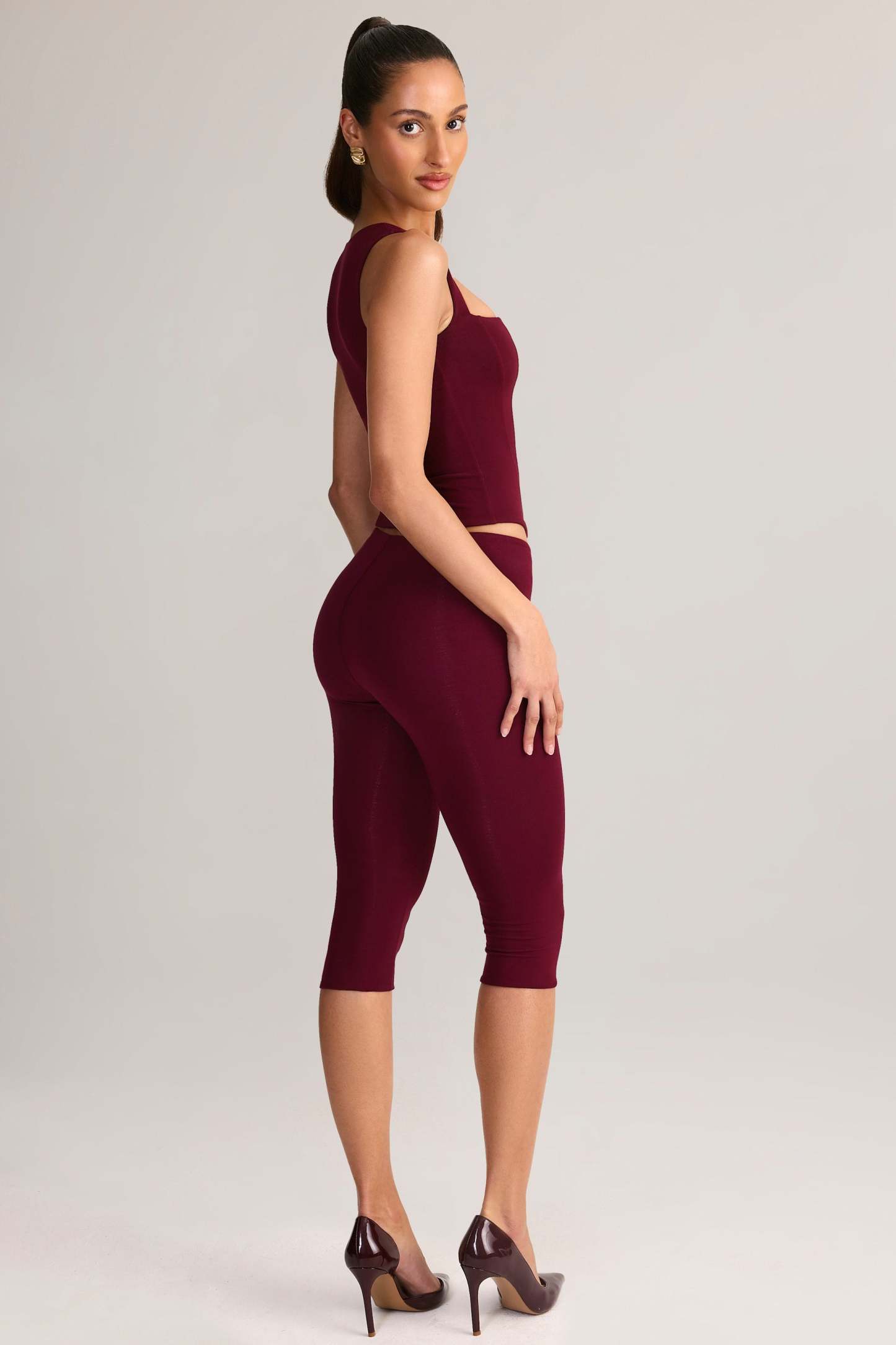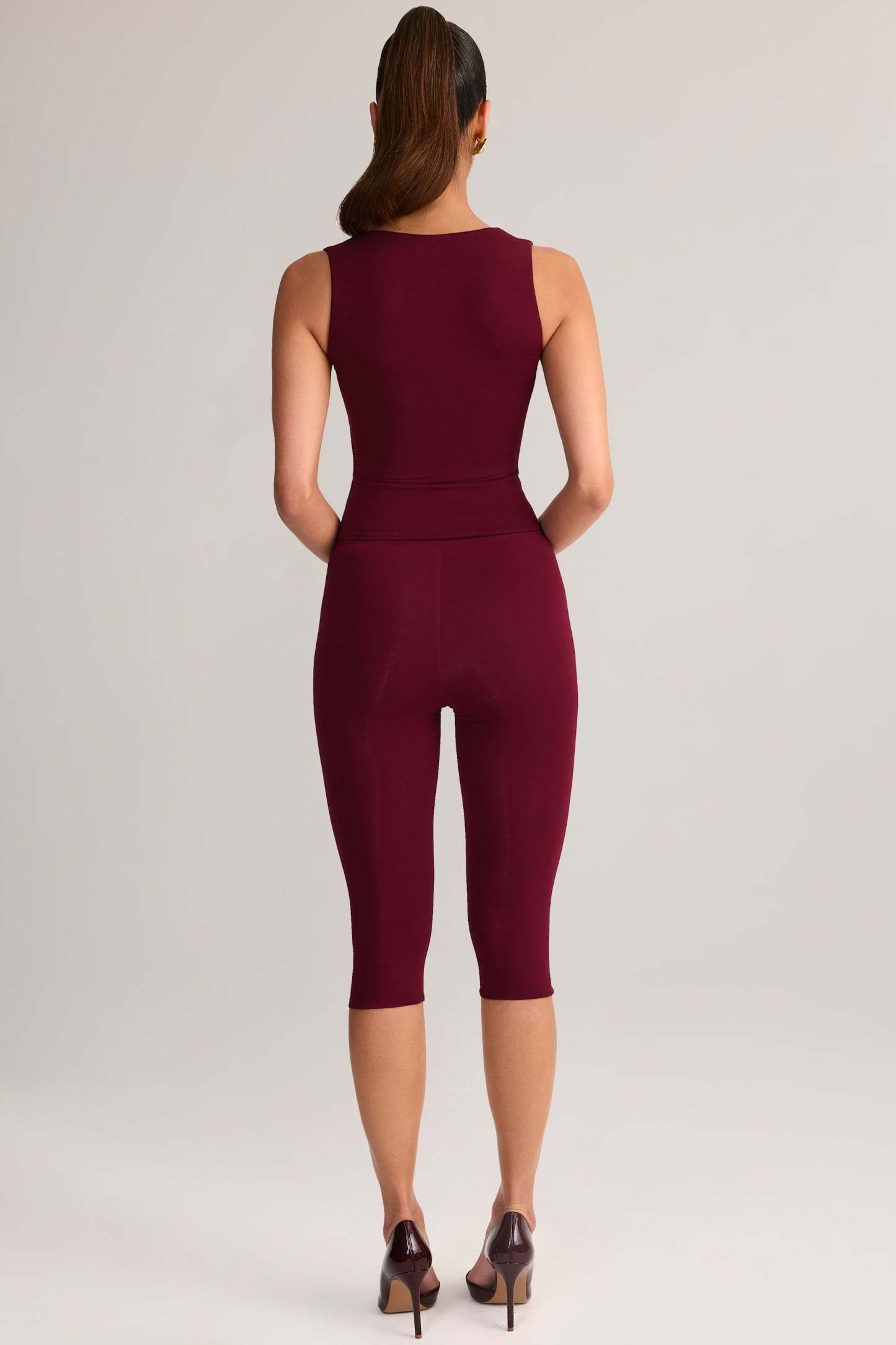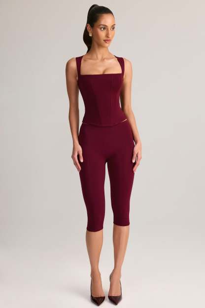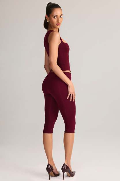 Modal Mid-Rise Capri Leggings in Wine