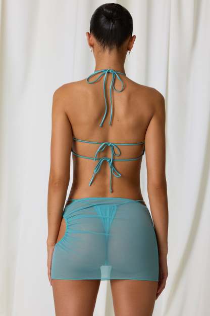 Drawstring Cut-Out Mini Skirt in Turquoise