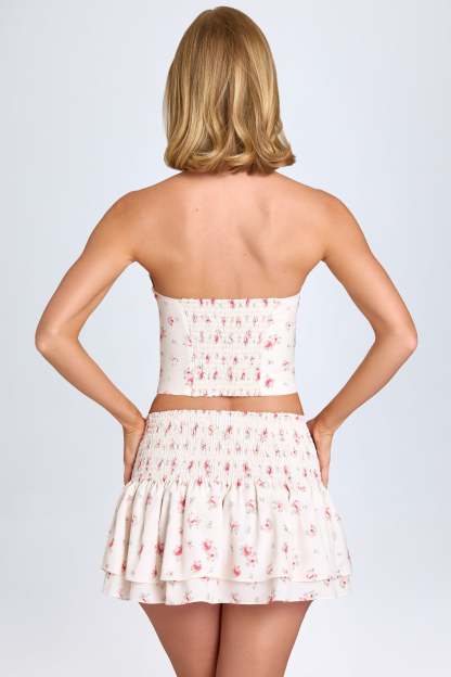 Ruffled Shirred Low-Rise Micro Mini Skirt in Small Rose Print