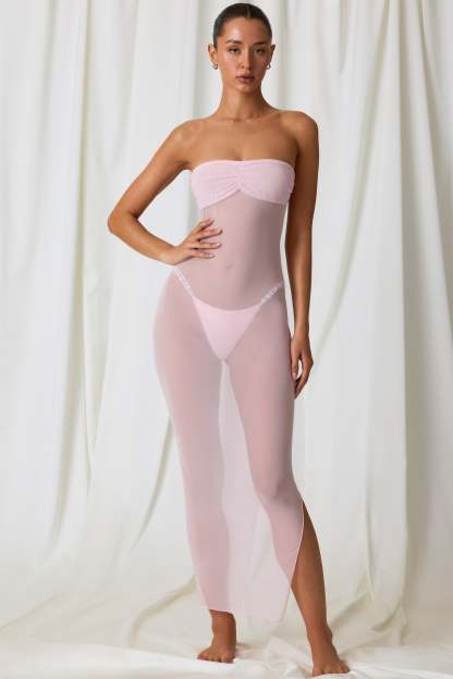A complement to glamorous beach looks, the Papeete midi dress is crafted from semi-sheer 20D stretch mesh to a bandeau silhouette with a double-layered bust cup for enhanced coverage and internal silicone tape for extra hold. It’s cut to a midi-length bandeau silhouette, complete with a breezy side split.