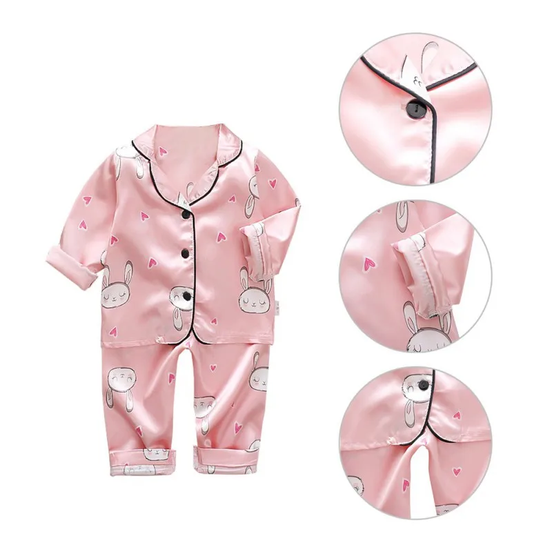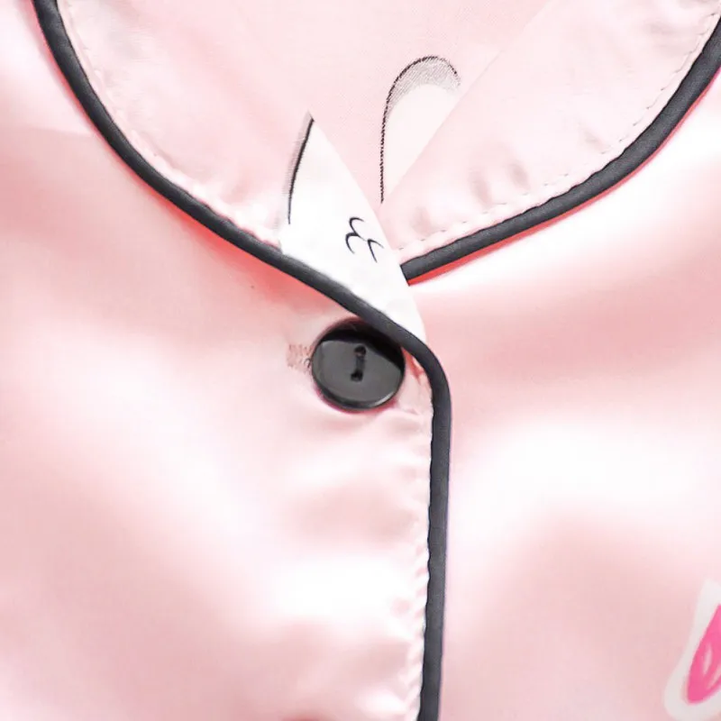 A classic satin PJ set with an adorable cartoon print will have your little ones heading to bed with sweet dreams. Featuring a silky smooth, satin construction with a fun cartoon print throughout. This set includes a long sleeve shirt and matching PJ pants with an elasticated waistband.