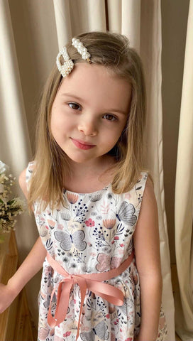 This sleeveless dress is printed decorated with butterflies and flowers. It's a relaxing dress for casual wear for your little one. Pair it with sandals and a sun hat for the perfect sunny day look.