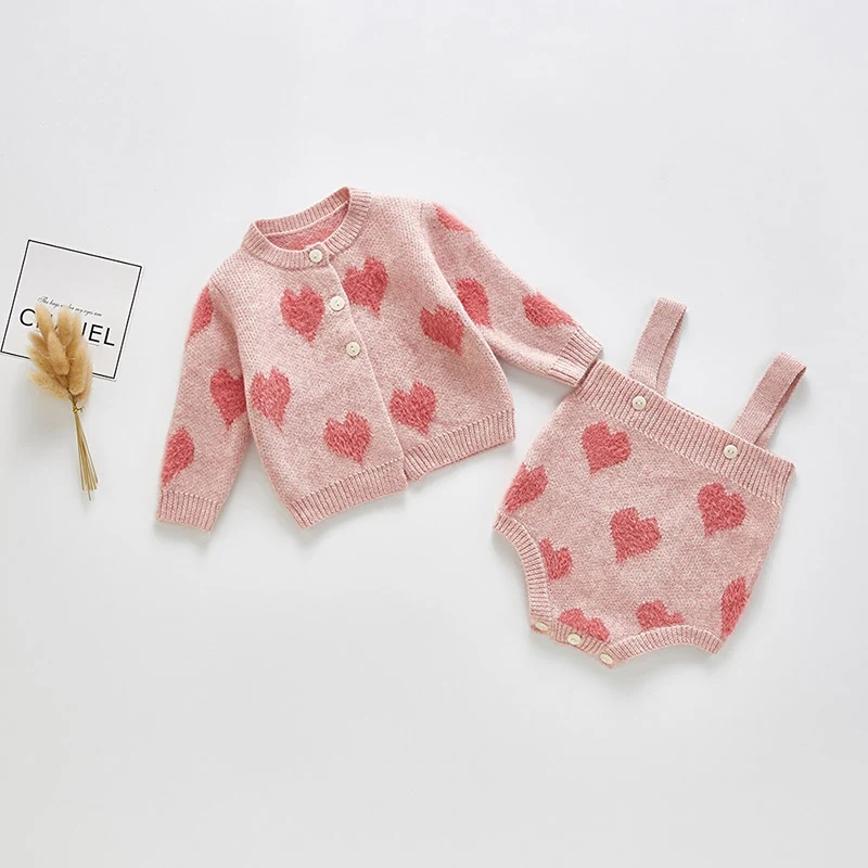 This love print sweater set is bundling up baby on a chilly day. It is made up of cotton material and the material is gentle to your baby's skin and comfortable to wear.