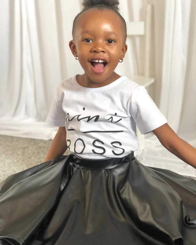 Style your little one in this mini-boss 2 piece outfit. This set includes a white t-shirt and a black A-line skirt. She will feel that she is in charge of her day and her life. What more could we want for the next generation of strong independent women?