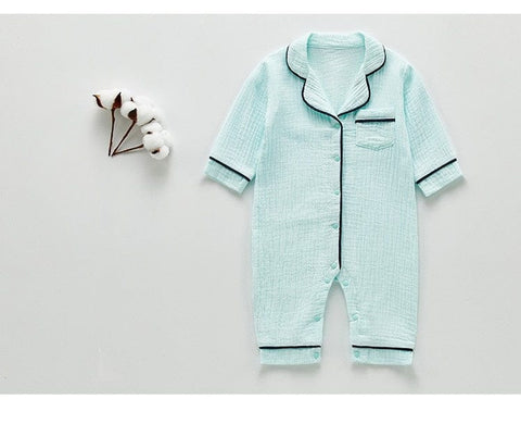 Kids will sleep blissfully in this solid kid's pajamas romper. It features long sleeves and a full front button closure. The bottom snap closure for an easy diaper change. The soft fabric will get them feeling comfy all night long!