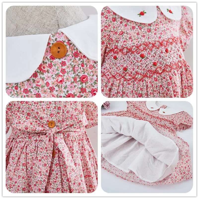 Nothing ignites the imagination like swinging on the swing under the tree with the smell of candyfloss. A beautiful floral dress just for lovely little girls. This dress has smock details at the front. It is made of soft fabric and lightweight materials. Ideal for birthdays, parties, Christmas, or any special event.