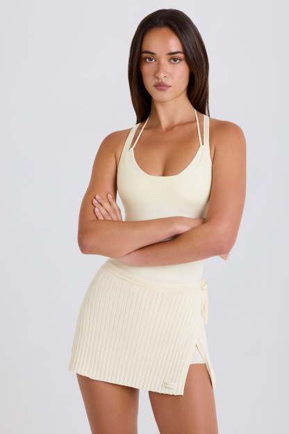 Ribbed Knit Tie Wrapover Skort in Cream