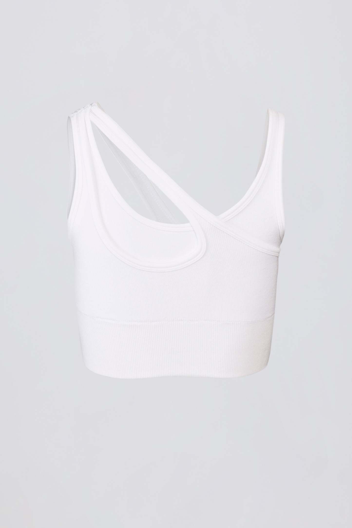 Your new workout wardrobe MVP. A layered design for maximum impact, this sports bra is crafted from our seamless ribbed Modal fabric that’s soft, stretchy and breathable. It’s designed to a layered silhouette with asymmetric fixed straps for the perfect level of support.