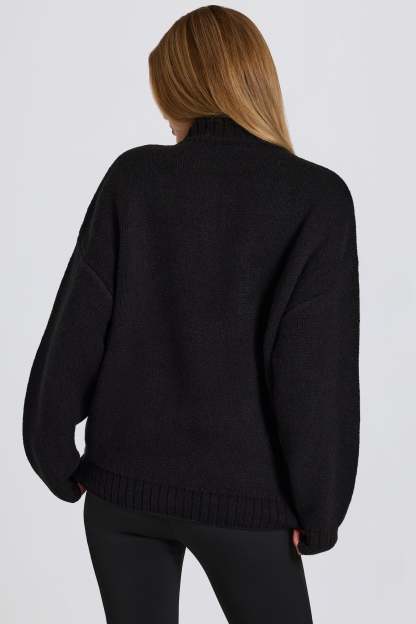 Knit Quarter-Zip Turtleneck Oversized Jumper in Burgundy