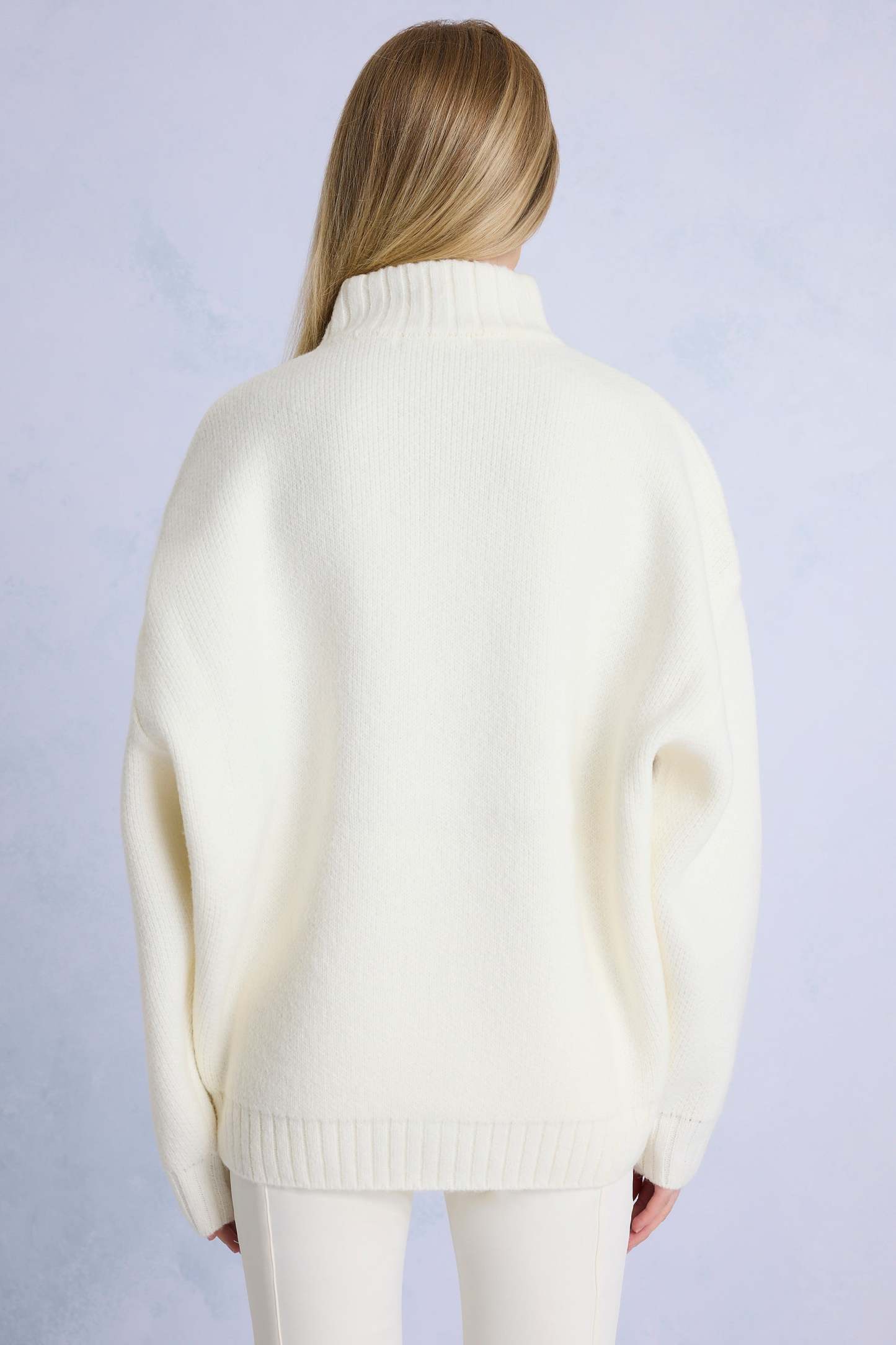 For powder days and picture moments. Crafted from soft jacquard knit fabric, this jumper features a turtleneck with a quarter-zip fastening and an all-over alpine design. Cut to an oversized silhouette with ribbed trims and long sleeves, it’s the perfect layer for staying warm in style – on or off the slopes.