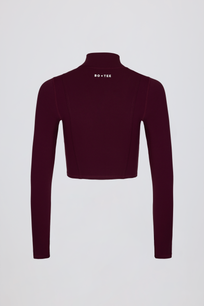 Soft Active Zip-Up Cropped Jacket in Burgundy
