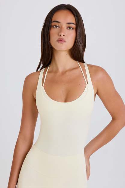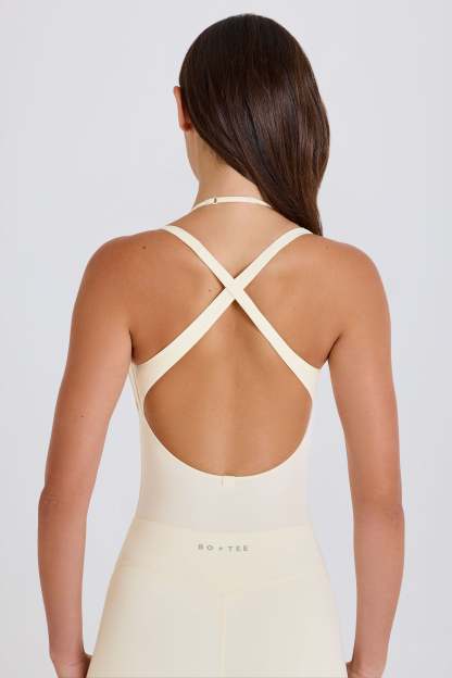 Designed with all-day comfort in mind, this bodysuit is the perfect base. Crafted from our silky smooth and stretchy soft jersey to a figure-defining fit, it’s framed with a layered scoop neckline and a statement open back with crossover straps. The thong-back coverage means seamless layering under your favourite shorts or joggers.