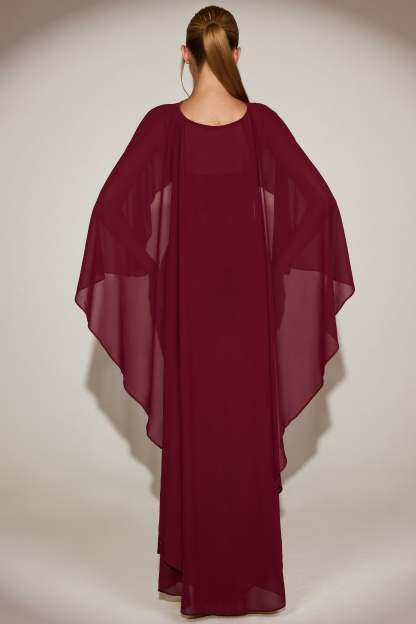 Add a little more to your already glam look with the Jovelle cape. Crafted from our premium chiffon fabric, it features a slash neckline and long cape sleeves that create a beautifully draped effect with every movement. Finished with a high-low design, Jovelle adds an extra touch of elegance to any occasion.